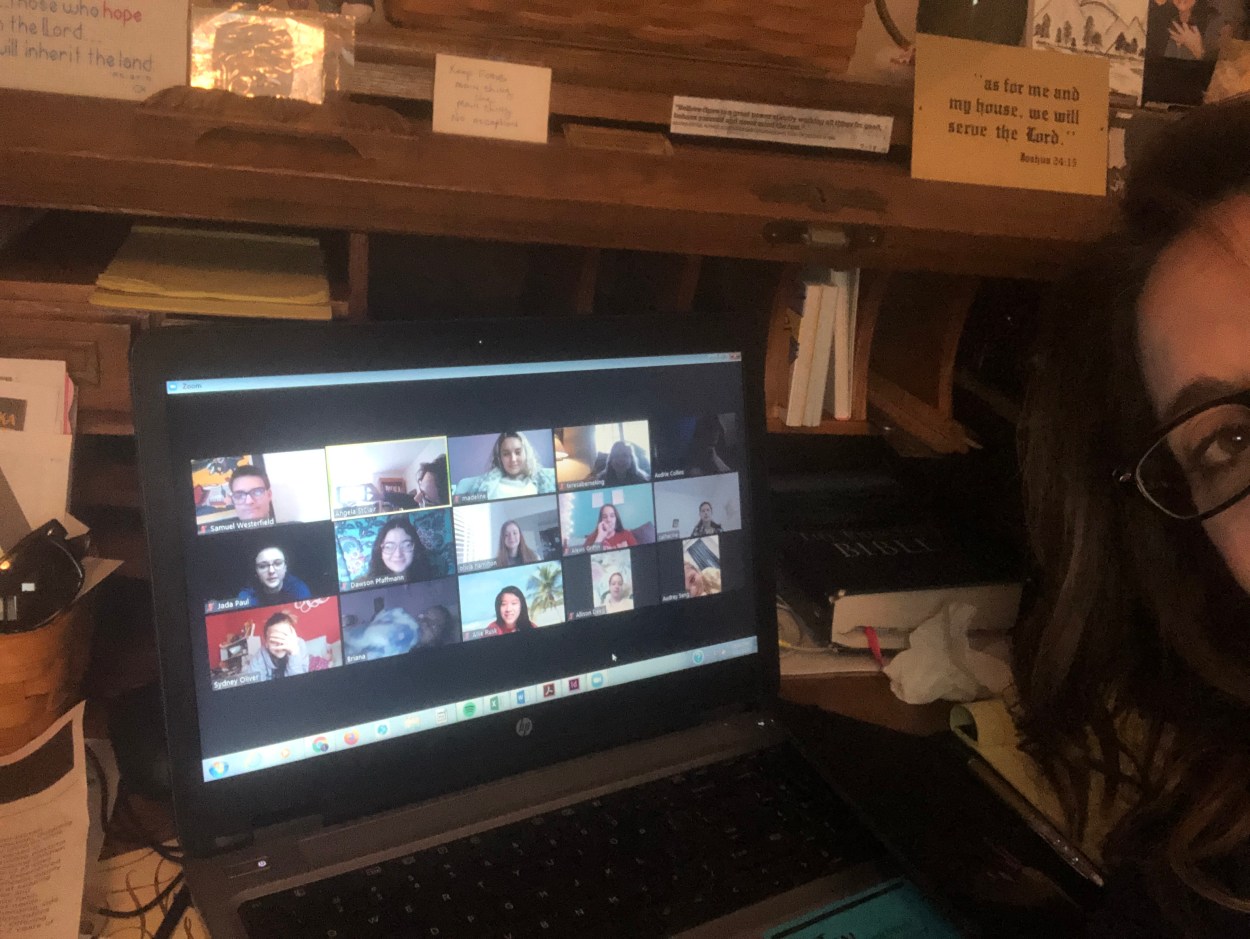 After gratitude, from one class to the next, we discussed revised plans and how I will take attendance each week and how communication during this virtual time is crucial.